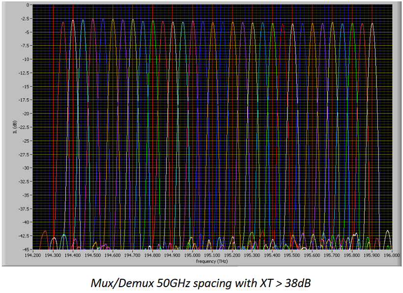 由于我们技术的多功能性,我们能够提供最完整的DWDM Mux/Demux范围,间隔从6.25GHz到400GHz。