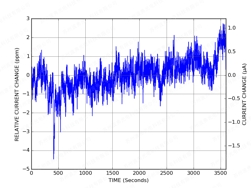 以400 mA运行的B-400控制器在1小时内的电流稳定性。