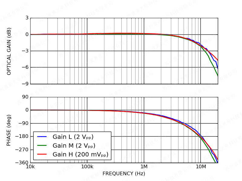 交流调制输入可用于调制100 kHz以上的激光,调制增益为20 mA/V: